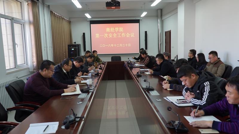 12月20日上午,商经学院第一次安全工作会议在办公楼三层会议室召开。院长孙玉杰、党委书记李振华出席会议并讲话。副院长杨和亭主持。管理办公室全体人员,教学部、图书馆、实验教学中心等职能部门,以及校区内物业、安保、食堂、卫生室、超市、移动等租赁、托管经营服务单位负责人参加会议。
