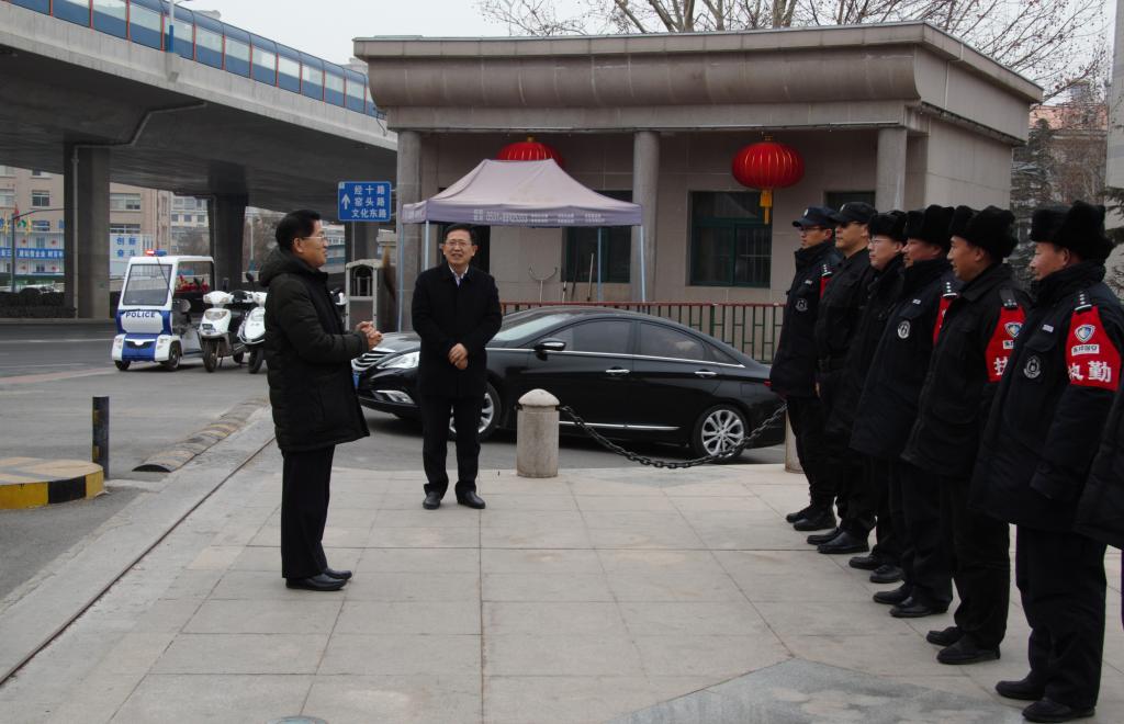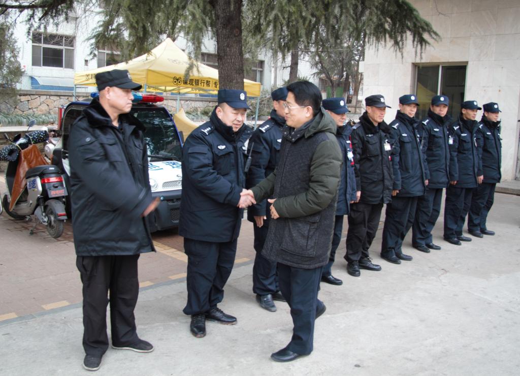 张书学代表学校向春节期间坚守岗位的工作人员表示感谢,并致以新春的祝福,勉励大家严格执勤、热情服务,要求安全管理处关心爱护好一线值班人员。
