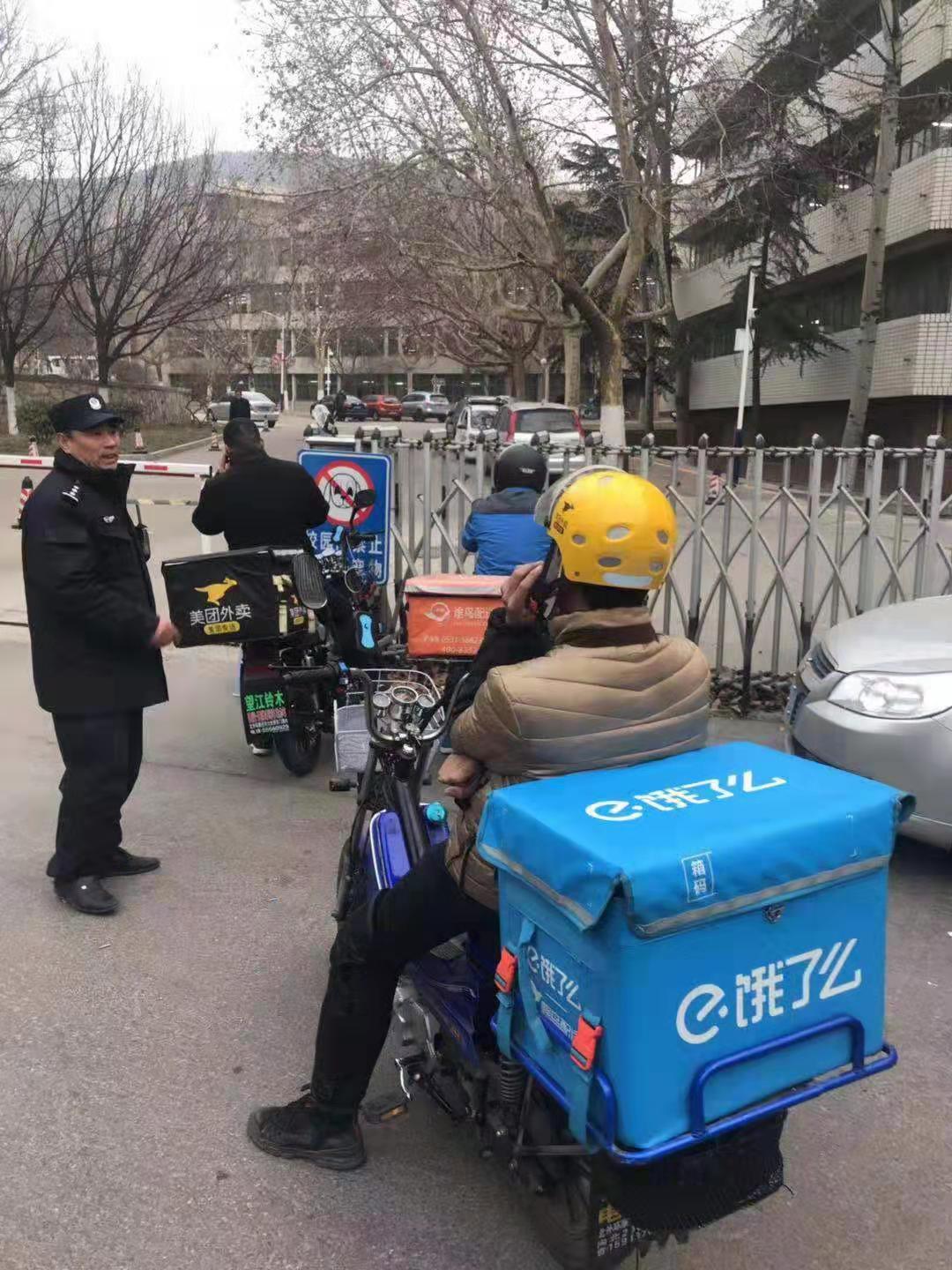 开学后,通过送外卖高峰时段在学校门口和各主要路段增加安保力量,对摩托车驾驶员采取步行送餐方式,对电动自行车在各路段流动进行测速等整治措施,对违规外卖车辆驾驶员进行首次警告、二次通报单位。