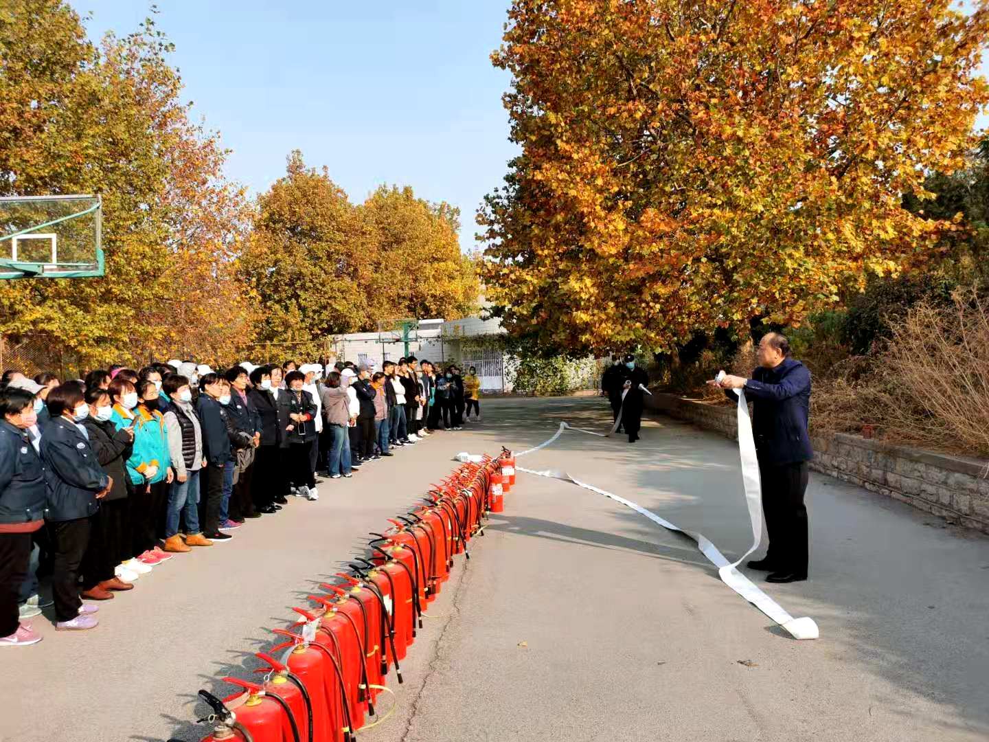 通过培训演练,大大提高了重点单位和岗位人员的消防安全意识,消防灭火技能得到进一步提升。下一步,我们还将深入到每一栋学生公寓、教学楼、食堂等场所,利用“模拟灭火器”组织全员进行现场演练,做到“横向到边、纵向到底”,力争让每个岗位人员都能熟练操作常用灭火器材进行灭火,提高全校师生的消防应急情况处置能力。
