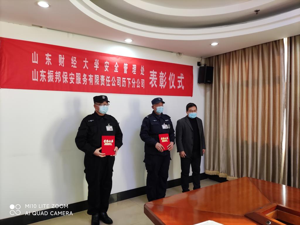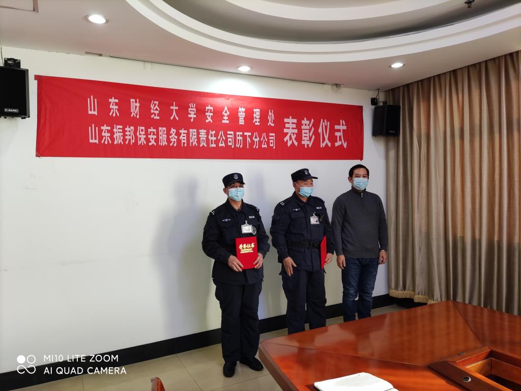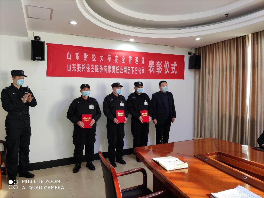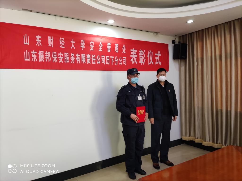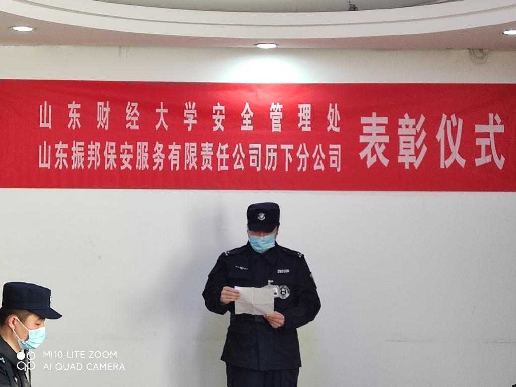 新春伊始、万象更新,张校长希望保安队伍再接再厉。一是牢固树立财大情怀,打造高素质队伍,不断提高服务质量,在一定程度上展示财大形象;做成振邦保安公司的一个“亮点”,作成山东财经大学的一张“名片”。二是不断强化奉献意识。要立足岗位弘扬奉献精神,爱岗敬业、勤专业务、善思方法、掌握技能、努力把本职工作做好。三是努力践行工匠精神。“三百六十行,行行出状元”。干一行、爱一行、专一行、精一行,把规章制度吃透、把岗位技能练精,立足本职岗位,弘扬和践行“工匠精神”,脚踏实地、求真务实、精益求精、争先创优。