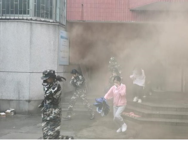下午,安全管理处同志使用发烟罐模拟学生公寓火灾,引发烟感报警。同学们在现场工作人员的指挥下,按照之前的培训知识,用湿巾捂住口鼻,沉着冷静,安全快速有序地撤离了现场。