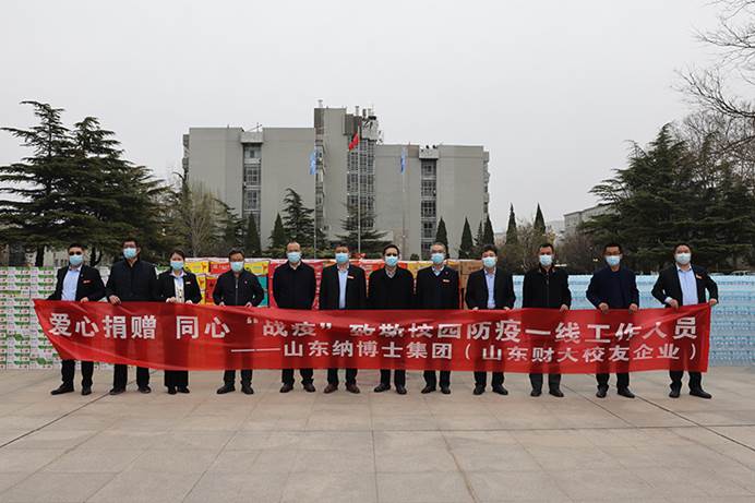 3月24日,校友企业山东纳博士集团向母校疫情防控一线安保工作人员捐赠物资,表达对母校培养的感恩之情。副校长张培国出席捐赠仪式,感谢校友企业对母校疫情防控工作的支持。党委保卫部、合作发展处、振邦保安公司负责人参加了捐赠仪式。