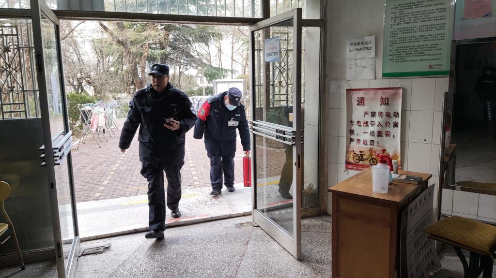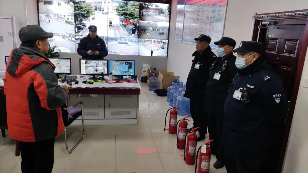根据应急预案要求,消防控制室值班员立即向巡逻队员发出火警信号。校区保安班长带领第一梯队携带灭火器、消防水带、水枪等器材到达现场展开火情侦察、救援。