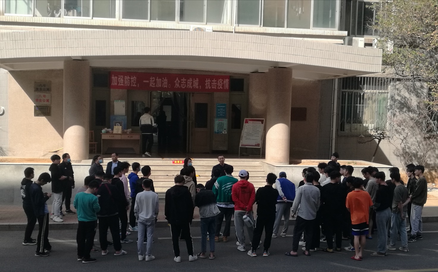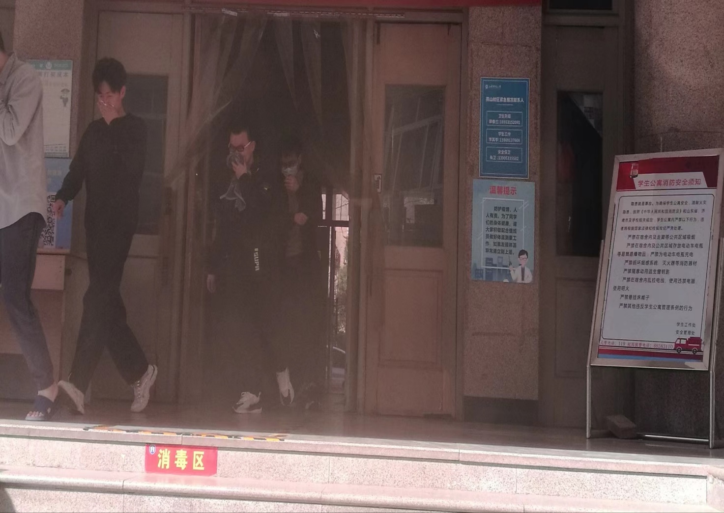 在消防安全检查中,按照上级通知要求,结合近期消防维保公司所提供的报告及学校实际,重点检查测试了重点部位及重点功能室消防设施设备系统联动情况。14时10分,应急逃生演练在4号、8号学生公寓正式开始,消防监控室第一时间向安全管理处、学生工作处相关人员和消防队员发出火情警报,同时启动消防应急预案。公寓内无线烟感发出报警鸣叫,学生听到火情警报后,用湿毛巾捂住口鼻,猫着腰,快速有序沿安全出口标志撤离,14时11分26秒,校区消防应急队第一梯队队员携带手提式灭火器等便携消防器材快速到达现场,全面展开火情侦察、扑救和人员疏散等应急行动。