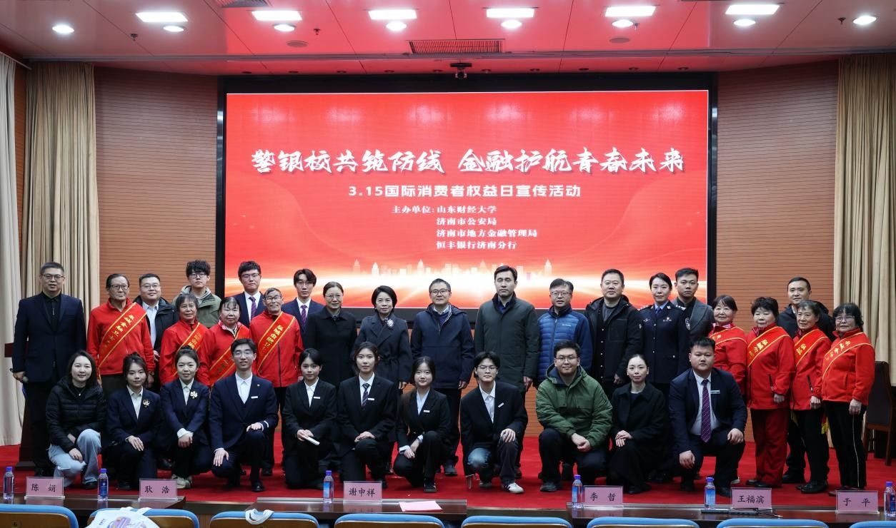 3月15日,学校联合济南市公安局、济南市地方金融管理局、恒丰银行济南分行在燕山校区图书馆报告厅开展“警银校共筑防线,金融护航青春未来”3 •15国际消费者权益日宣传活动,校党委副书记谢申祥出席活动并讲话。