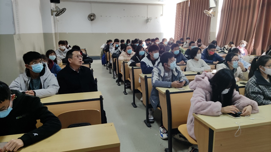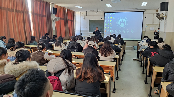 周所长向同学们介绍了当前电信诈骗形势、辖区内大专院校电信诈骗案件,以及电信诈骗案件的惯用手法,用学生身边的真实案例为同学们上了一堂生动的安全教育课。