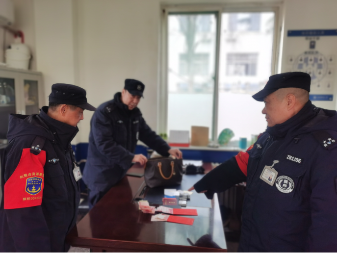 2月17日上午9时,舜耕校区保安队员商兆和在校门口巡逻时,发现在舜耕校区门口人行道边摆放着一个女士手提包,经询问后现场无人认领,商兆和在值班队员吴宝卫和王胜海的见证下查验包内物品,发现包内有现金三千余元、银行卡和社保卡等,立即将该情况上报学校保卫部,保卫部通过调取监控确定并联系到了失主。晚上21时左右,失主赶到学校,经确认后,失主领回了丢失的手提包。她对商兆和、吴宝卫和王胜海拾金不昧的高尚品德高度赞扬,并当场拿出现金表示感谢,商兆和婉拒了失主的酬金,朴实地说:“这是我们应该做的,……。”