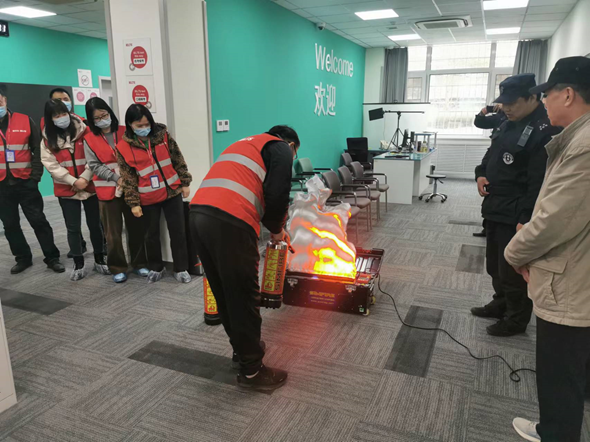 演练分理论授课和实操训练两个阶段进行,理论授课主要包括火灾危害和消防安全的重要意义、建筑消防法规、消防隐患排查与防范、火灾应急处置流程、初起阶段火灾扑救、应急疏散逃生、灭火器材使用管理等方面内容;实操训练主要利用便携式智能仿真灭火实训仪进行现场演示教学,培训完毕后,全体参训人员利用灭火实训仪进行多次仿真灭火练习。